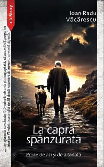 Acum, această carte se numește „La capra spânzurată”, după titlul uneia dintre poveștile pe care le consider reprezentative, crezând eu că, în momentul de față, la noi, la români, s-a cam fumat povestea cu miorița cea năzdrăvană și că e vremea de a ne prezenta mai degrabă ca demni și onorabili admiratori și supraveghetori ai caprei vecinului. Desigur, în vatra satului România, ba, chiar Europa.