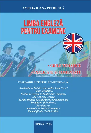 Editia 2025 a cartii „Limba engleza pentru examene” se adreseaza in mod special candidatilor la Academia de Politie, la toate scolile de subofiteri, la Academia de Studii Economice, la Facultatile de Limbi Straine. De asemenea, cartea este destinata si acelora care vor sustine proba de limba engleza la examenul de bacalaureat, precum si celor care doresc sa-si imbunatateasca abilitatile lingvistice.