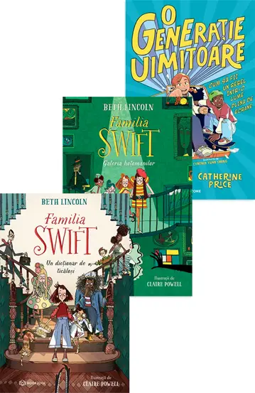 E timpul să luăm exemplul Poznașei Swift, eroina curajoasă din seria „Familia Swift”, care reușește să dezlege cele mai încurcate mistere folosindu-și mintea ageră, curajul și spiritul de observație, nu ecranul telefonului. Aventurile ei le reamintesc copiilor cât de palpitantă poate fi lumea atunci când este trăită cu adevărat, nu privită prin telefon sau tabletă. Acest pachet aduce împreună farmecul unei ficțiuni pline de umor, enigme și personaje excentrice cu mesajul puternic din „O generație în pericol”, o carte care atrage atenția asupra modului în care tehnologia le modelează copilăria celor mici. Împreună, cele două cărți vorbesc despre cât de important este să le lăsăm copiilor spațiu pentru imaginație, joacă, curiozitate și descoperirea lumii reale.