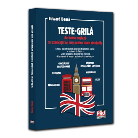 Teste-grila de limba engleza cu explicatii pe larg pentru toate nivelurile. Gimnaziu, liceu, bacalaureat, admitere invatamant superior, concursuri profesionale, Cambridge